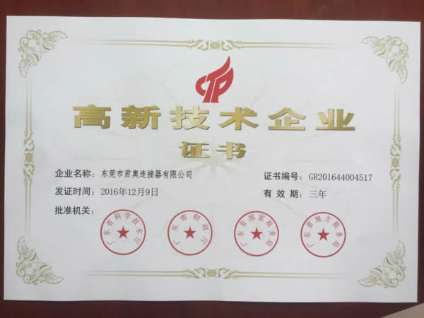 高新技术企业证书